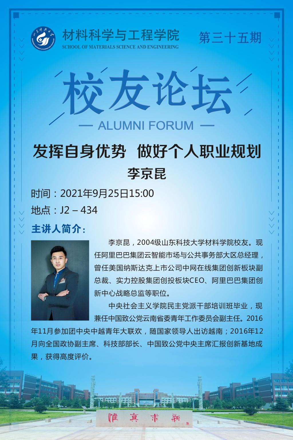 上一条:【70周年校庆系列学术报告】材料学院第三十六期校友论坛——新能源材料... 下一条:【70周年校庆系列学术报告】材料学院第三十四期校友论坛——高分子材料...